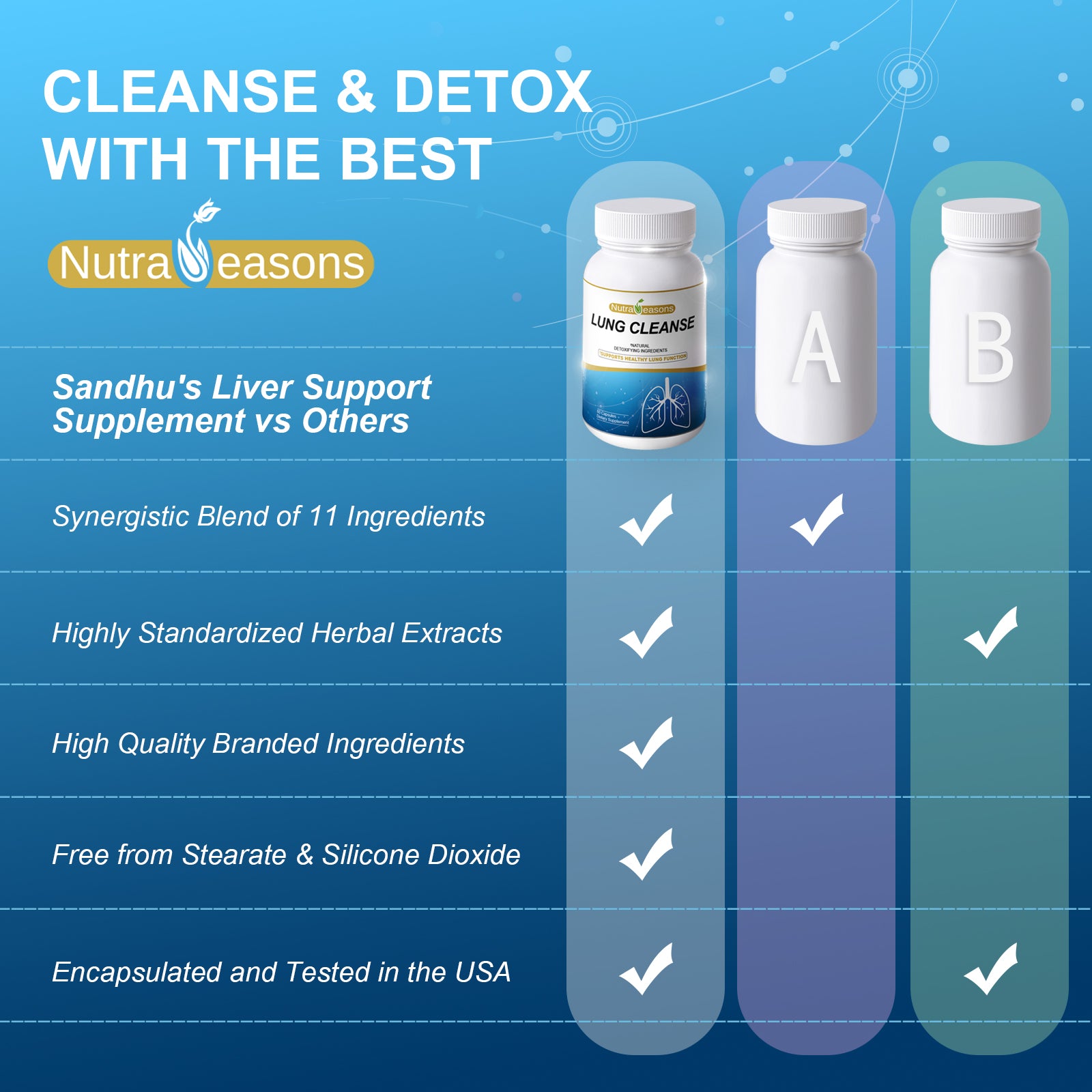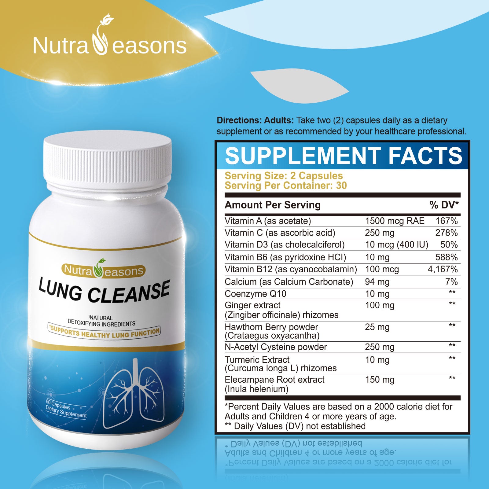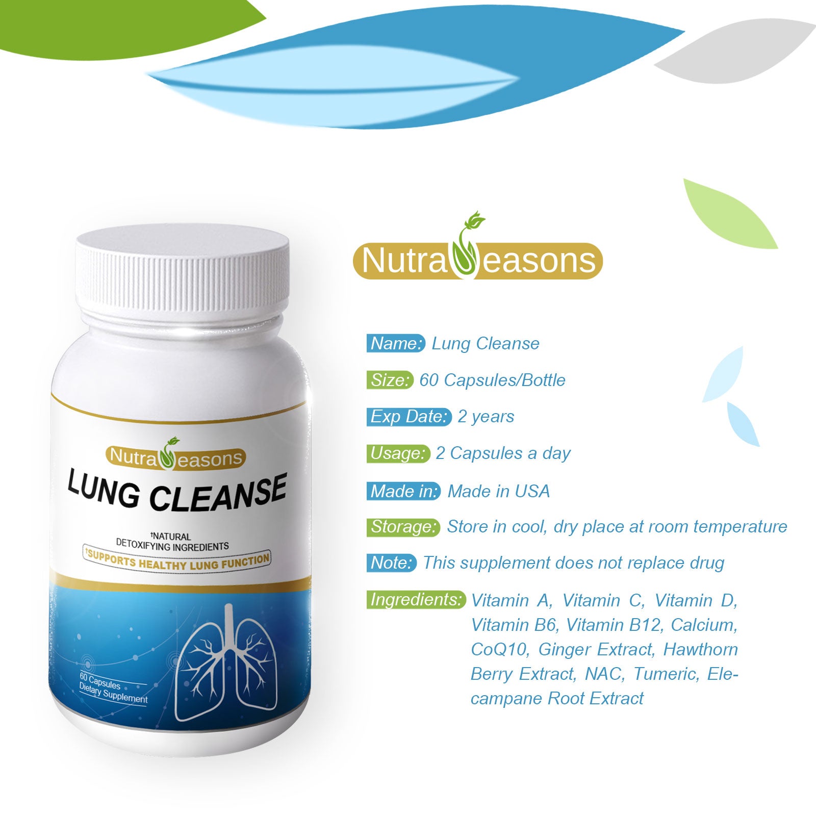 Nutra Seasons' Lung Cleanse uses a powerful blend of herb extracts to enhance your Lung. It contains ingredients such as Ginger extract, Hawthorn Berry Powder, Turmeric Extract, Elecampane Root that have been traditionally used for Lung protection.